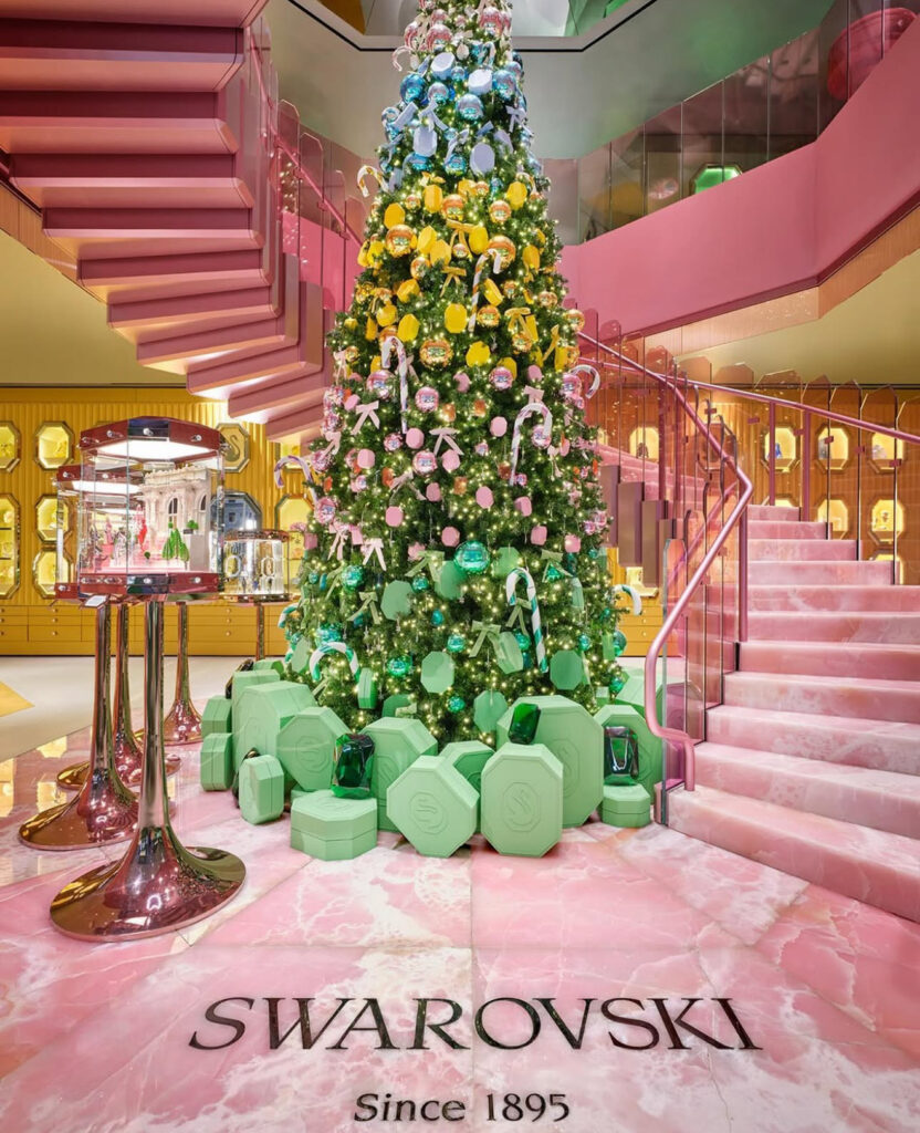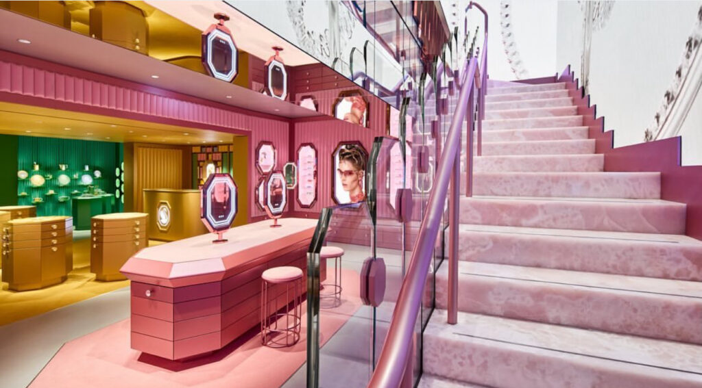 Nel cuore di Milano, a pochi passi dal Duomo, è stata creata una scenografica scala in Onice Rosa per Swarovski.
