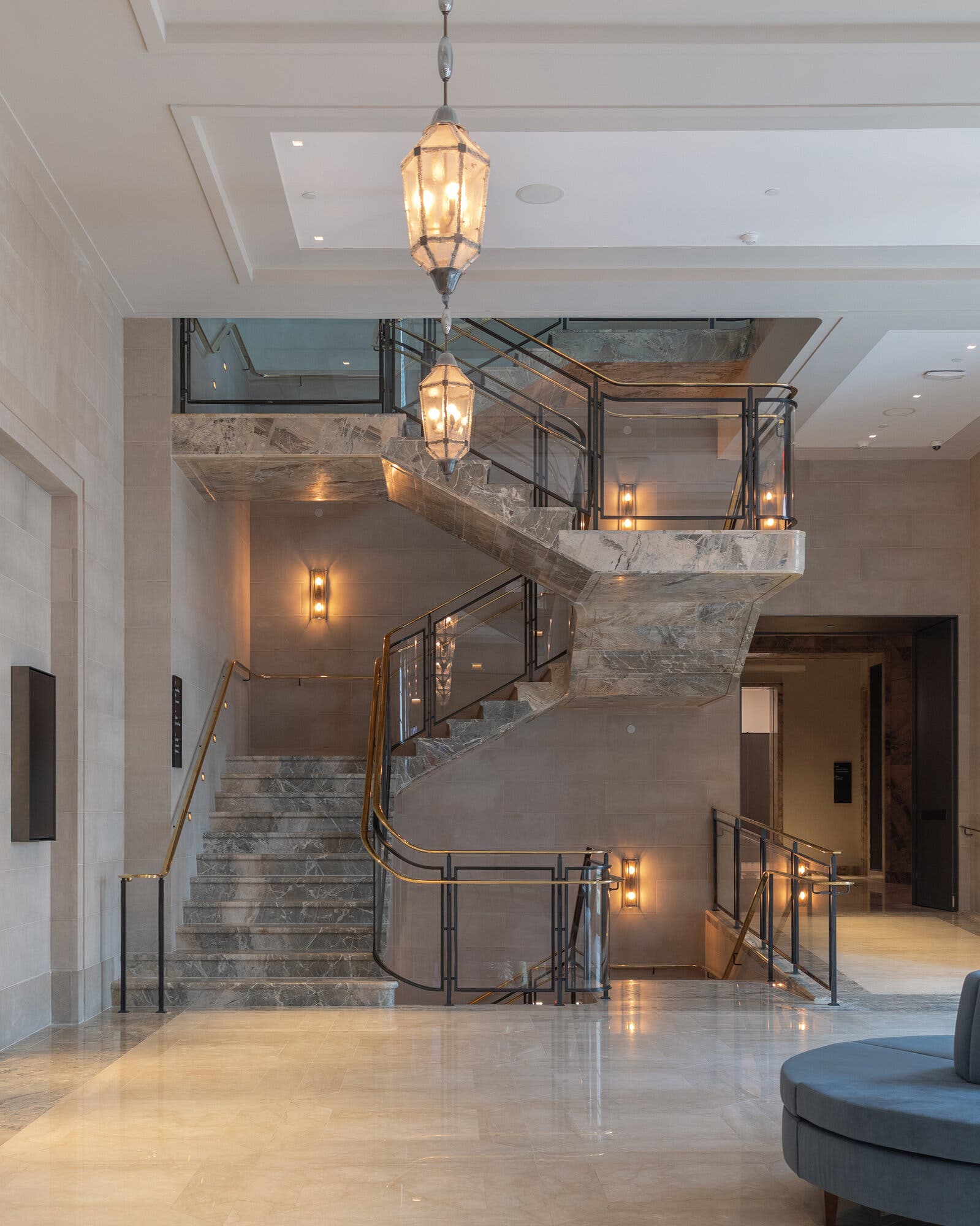La scala, pubblicata sulle riviste più importanti del settore, è frutto di soluzioni tecniche e lavorazioni uniche, che fondono perfettamente tradizione classica e maestria artigianale, contribuendo al rinnovamento di uno dei luoghi d’arte più iconici di Manhattan.